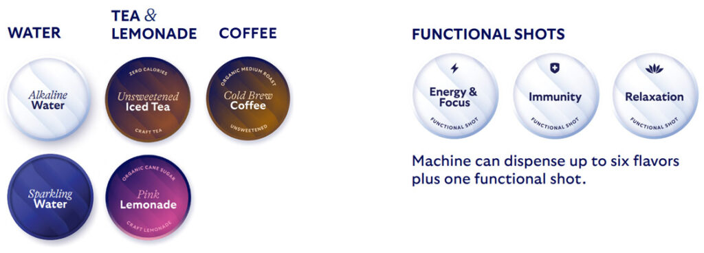 - Mix & match syrups and/or flavor shots to create more than 21 alkaline infused still, and vitamin and mineral infused sparkling beverages