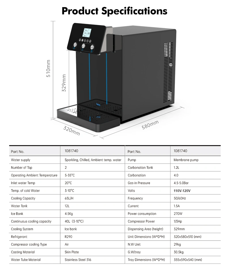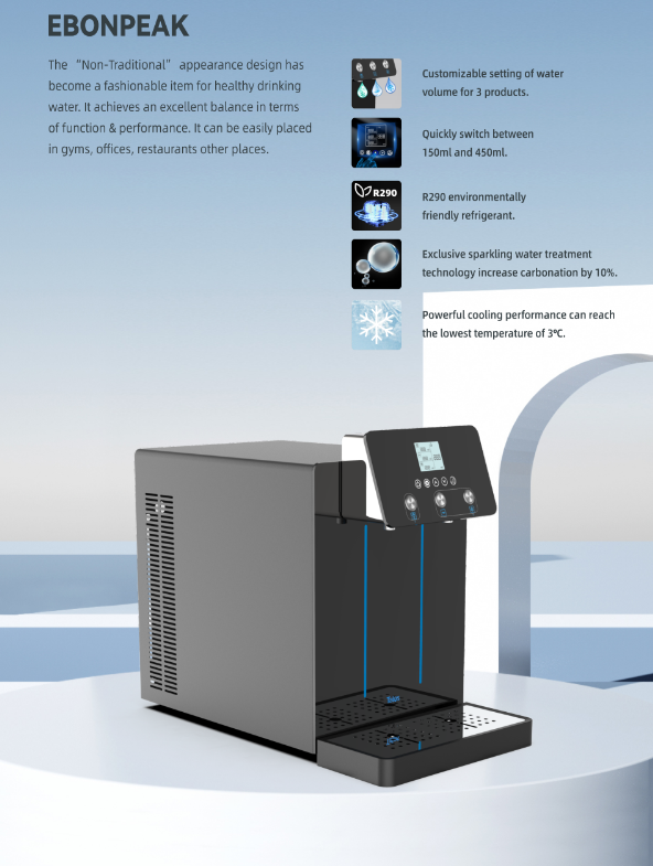 • 10% Exclusive sparkling water treatment technology increase carbonation by 10%