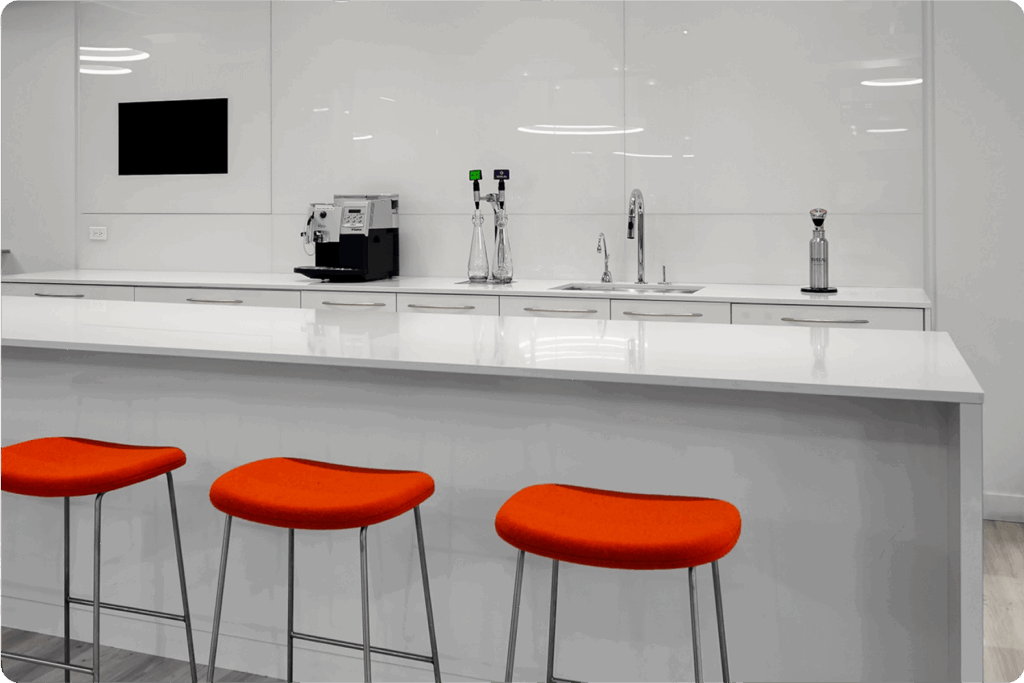 • Sleek, integrated design with a cobra-style tap and drip tray maximizes countertop space and hides the system components
